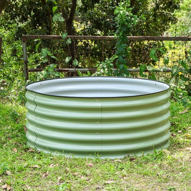 Vegega 17 Tall 42 Round Metal Modular Corrugated Raised Garden Bed Kit Green Walmart Com